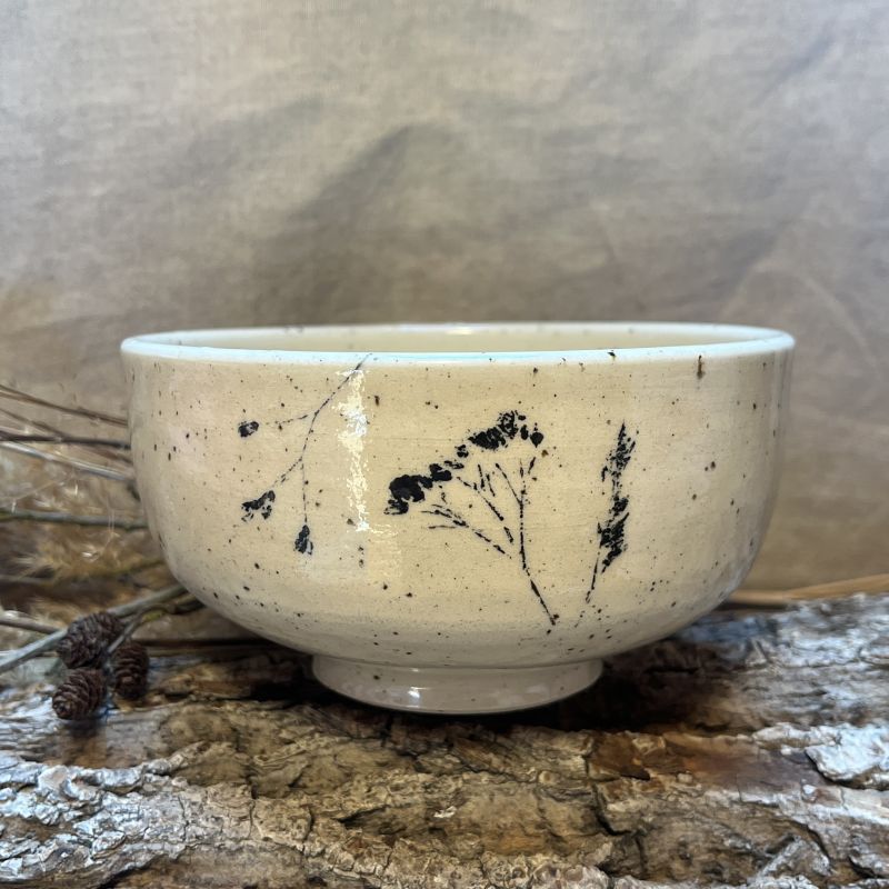 Tato kolekce vznikla poté, co jsem si řekla, že když jde tisknout přírodninami na látku, možná by to šlo i na keramiku. A ono jo. A tak je teď naše pošumavská louka otisknutá i na čajovém nádobí.