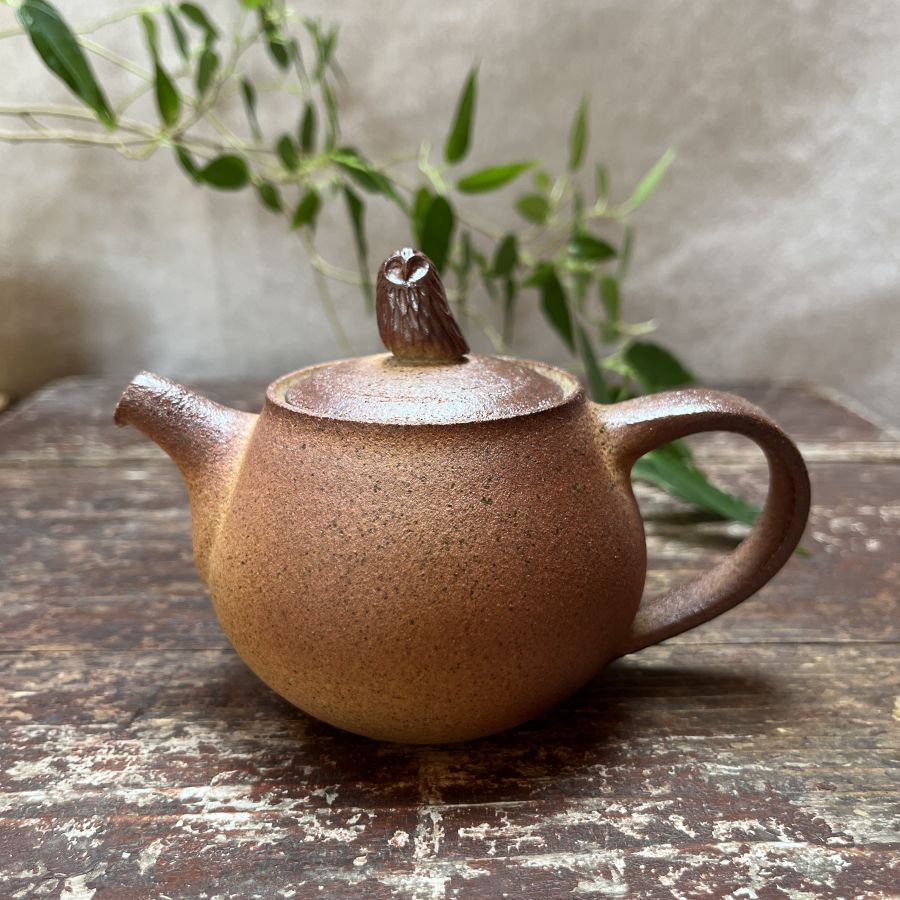 Příjemná konvička o objemu 142 ml se sovou (dřevem) pálenou. Její žíhaný povrch byl způsoben plameny ve dřevopeci, což z ní dělá jedinečného společníka při Vašem čajovém obřadu. Je vhodná zejména pro styl přípravy čaje Gong fu (více nálevů).