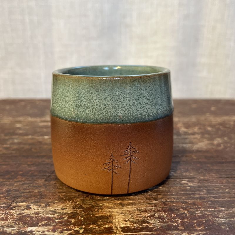 Moje klasika - kalíšek se smrky obarvenými pošumavskou hlínou. Hodí se skvěle třeba na kávu nebo kakao.