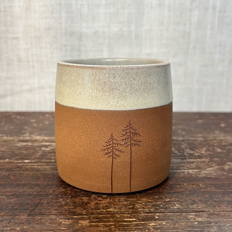 Tenhle pošumavský kalíšek se bude skvěle hodit třeba na ranní kávu. Budete tak mít kousek lesa pořád doma. Smrčky jsou obarveny na hnědo našim lokálním jílem.