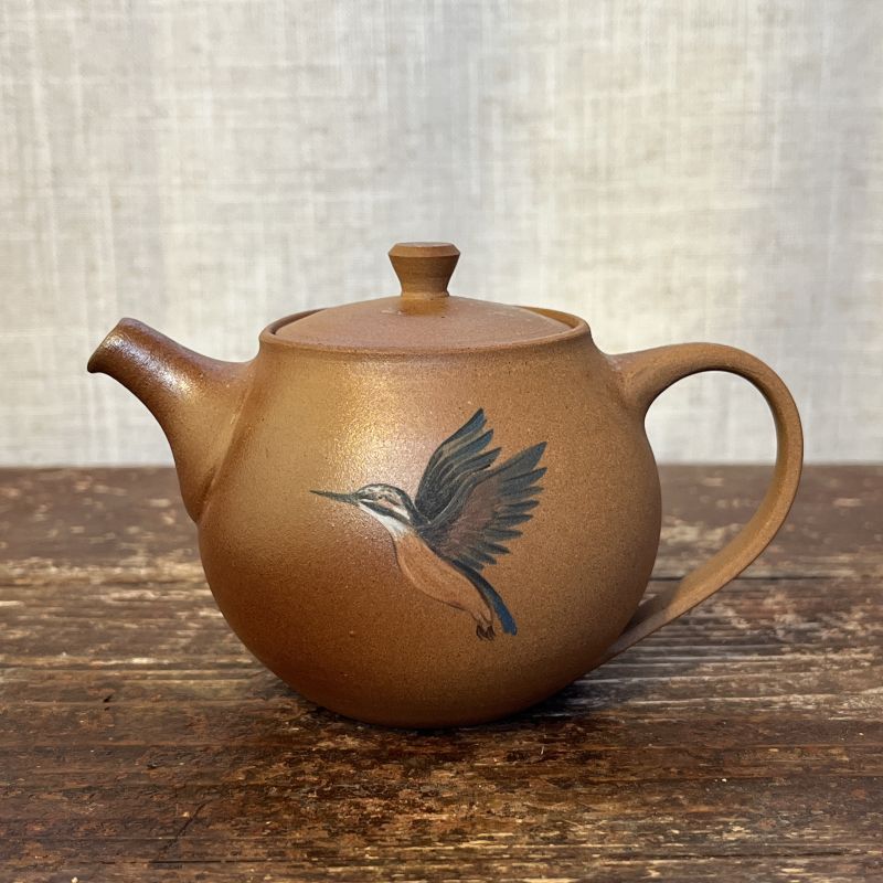 Konvička má objem 140 ml a skvěle se hodí na čajování v jednom či dvou lidech. Zepředu je trochu lesklejší díky hlíně reaktivní na dění v peci (elektrické). Zezadu je jemně posypána popelem. Nahoře nad ouškem má jemňounkou povrchovou prasklinku (která neohrožuje její integritu). Poklička má trochu vůli (cca 2 mm). Slévá moc příjemně (na požádání mohu poslat video).