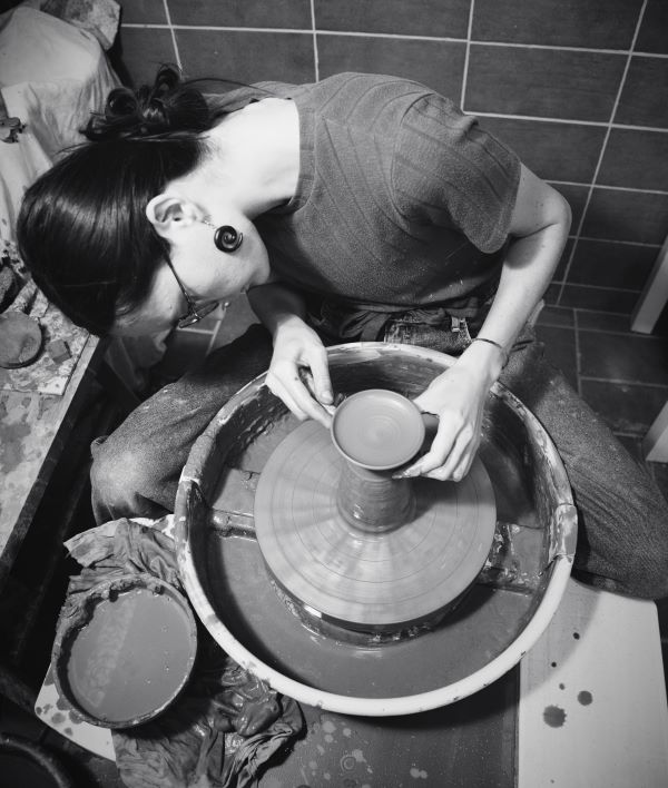 Jako malá jsem neustále něco vyráběla z polymerových nebo samotvrdnoucích hmot, a tak byla jen otázka času, kdy mi přestanou stačit dekorativní předměty a budu chtít tvořit něco pro každodenní používání. Moje začátky byly náročné - z učení se centrovat hlínu jsem měla sedřené ruce a o technologii výroby užitkové keramiky jsem toho věděla pramálo. Trávila jsem hodiny u počítače a snažila se pochytit co nejvíc z videí a článků. Pak konečně skončil covid a já se dostala na první pořádné lekce pro hrnčíře u Václava Kuglera.